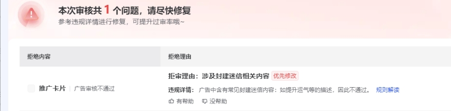 抖音千川全域投流涉及封建迷信相关内容不通过 智商税 2025-08-30 短视频 151 0 推广 抖音千川全域投流涉及封建迷信相关内容不通过 不要在视频当中讲封建迷信,人工审核会被驳回,及时整改 阅读全文 原文链接:https://www.zhishangshui.cn/582.html,转载请注明智商税出处~~~ 0 0 分享海报